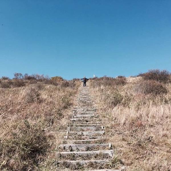下山是腿着下来的,层林尽染,黄山绿山交叠,路途中的白桦树(我对象说是杨树,欢迎指正😊)非常有感觉。很多爬山的大哥还有小姐姐问我们还有多远到山顶,我对象信口开河:也就半个小时吧。我也附和:山上很漂亮!