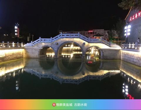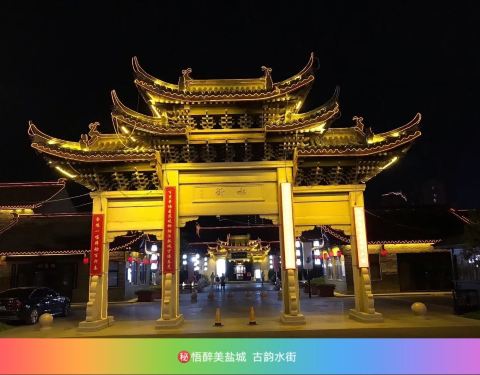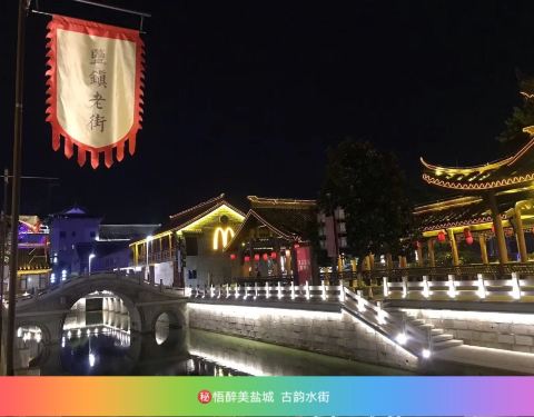 小桥流水,商铺林立,华灯初上,灯火阑珊处古韵犹存从海盐博物馆出来,走几百米就是盐镇水街,整个街道都是仿古的建筑,尽是海盐历史文化的风貌,亭台楼阁临水而建,青瓦灰墙,满眼所见皆是盐城的水乡风情。水街主要分为大宅门、天水广场和驿水酒家,餐饮、茶馆、...从海盐博物馆出来,走几百米就是盐镇水街,整个街道都是仿古的建筑,尽是海盐历史文化的风貌,亭台楼阁临水而建,青瓦灰墙,满眼所见皆是盐城的水乡风情。水街主要分为大宅门、天水广场和驿水酒家,餐饮、茶馆、小吃、土产……紧邻串场河,河边有环形码头,可以乘坐木船,经河道穿越水城门,便可进入水街。小桥流水,商铺林立,华灯初上,灯火阑珊处古韵犹存。