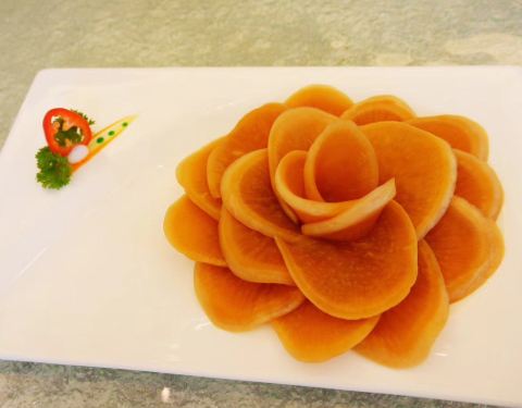 - 餐前小点:酱香萝卜皮,芬芳的酱香中透着爽脆的味道,还带点微辣带点微甜,口感层次丰富,非常开胃