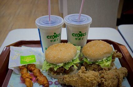国产炸鸡连锁店 中国肯德基 味道还可以 就是汉堡有点小 鸡翅炸的不错 小吃也挺好的 人蛮多的 价格便宜 超级便宜