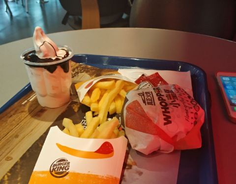 老婆在附近做头发,闲来无事就找个餐厅进去做一下,还是汉堡王比较合适,这家店十分的大有室内有室外位置,里面有几张桌子下面都有充电插头的,很方便。 套餐也比较划算,吃了个雪糕,还有薯条,也就是20块钱出头...