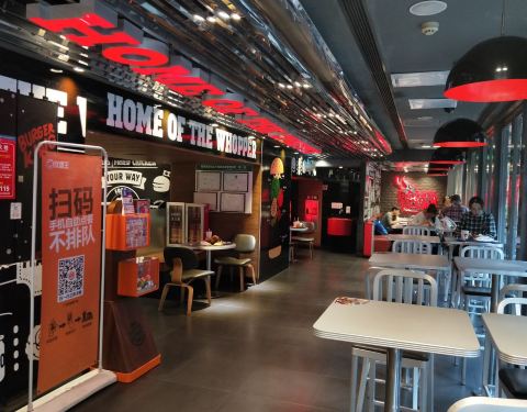 广州的汉堡王门店其实并不是太多,淘金路一带就只有这一家,整个环市路上也没几家,中午去的时候人不算太多
