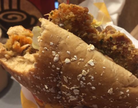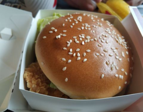 服务还是那个样子,不怎么样,10元辣鸡排汉堡价格是超值的,外国人在旁边吃,一直在讲中国的鸡肉偏瘦,突然间他们讲中文普通话也相当标准。中午人太多了,被辣鸡排辣到了,不想说话打字了,啊呀呀!