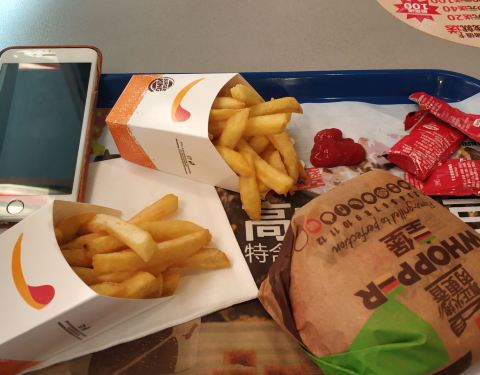 老婆在附近做头发,闲来无事就找个餐厅进去做一下,还是汉堡王比较合适,这家店十分的大有室内有室外位置,里面有几张桌子下面都有充电插头的,很方便。 套餐也比较划算,吃了个雪糕,还有薯条,也就是20块钱出头...老婆在附近做头发,闲来无事就找个餐厅进去做一下,还是汉堡王比较合适,这家店十分的大有室内有室外位置,里面有几张桌子下面都有充电插头的,很方便。 套餐也比较划算,吃了个雪糕,还有薯条,也就是20块钱出头,就在这里消磨了大概一个多小时。 不足之处就是店里没有独立的洗手间,要去到商场里面的,不过问题也不是特别大。