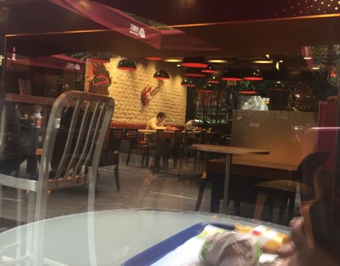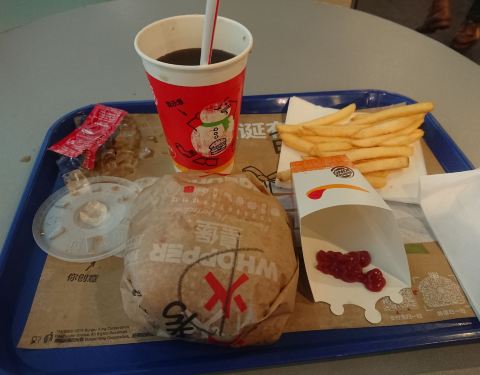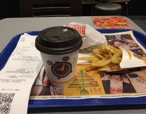 广州的汉堡王门店其实并不是太多,淘金路一带就只有这一家,整个环市路上也没几家,中午去的时候人不算太多,如果遇上有银联的活动,那可是排着大长队了,有时无法理解为什么总是在露天的座位那里有那么一些人好像不用干活,却穿着职业装的在那里躲着玩手机。