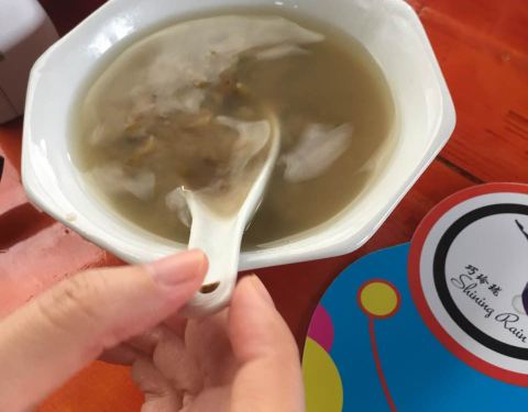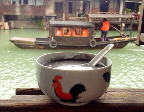 在女人街的一头,铺子位置好,还有邻水的一排座位,点了大公鸡碗盛的黑芝麻糊,喝出了超市里南方黑芝麻糊的味道,开水冲的都没拌匀疙瘩好多。。。 看着窗外的载着游客乌篷船休息一会儿~ 感觉老板是在贩卖景色,而不是甜品-_-#