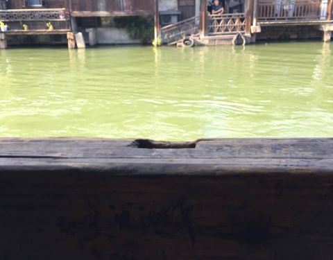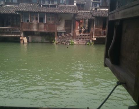 在女人街的一头,铺子位置好,还有邻水的一排座位,点了大公鸡碗盛的黑芝麻糊,喝出了超市里南方黑芝麻糊的味道,开水冲的都没拌匀疙瘩好多。。。 看着窗外的载着游客乌篷船休息一会儿~ 感觉老板是在贩卖景色...