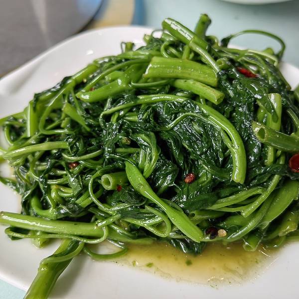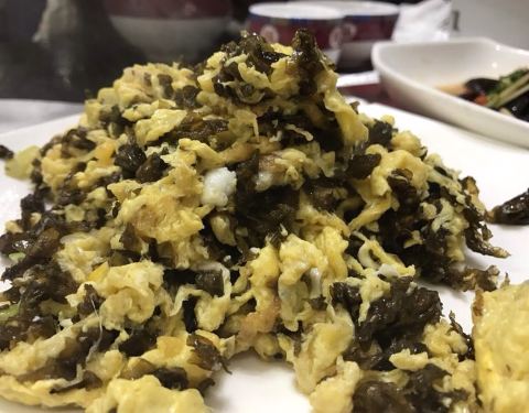 当地人推荐的餐馆,点了藏香猪、地衣炒蛋、拌木耳和炒青菜,菜的分量挺大,没吃完,藏香猪很香,不过要趁热吃,凉了有点腻,青菜很甜,餐馆生意很好,基本要抢座