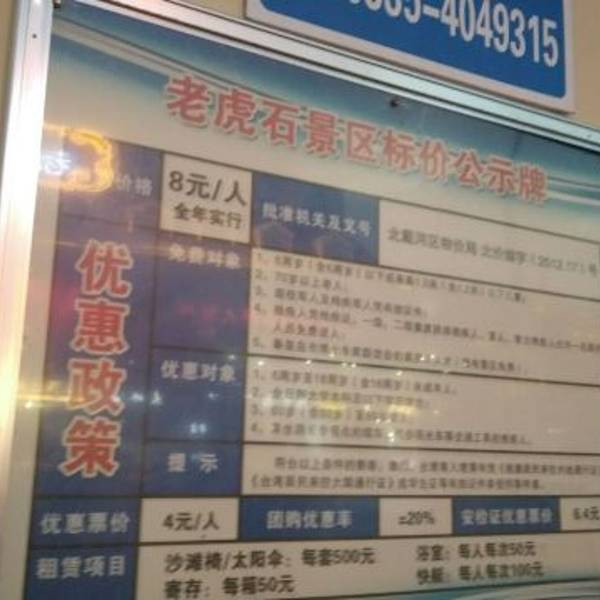 ...不大,景色很美,营业到22点,17点是入园的最佳时间,海水温暖不凉,周边停车方便,停车费不便宜老虎石海上公园,不大,景色很美,营业到22点,17点是入园的最佳时间,海水温暖不凉,周边停车方便,停车费不便宜。北戴河好像有个不成文的规定,停车费一律20。[微笑]