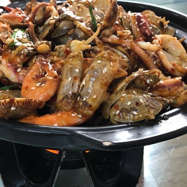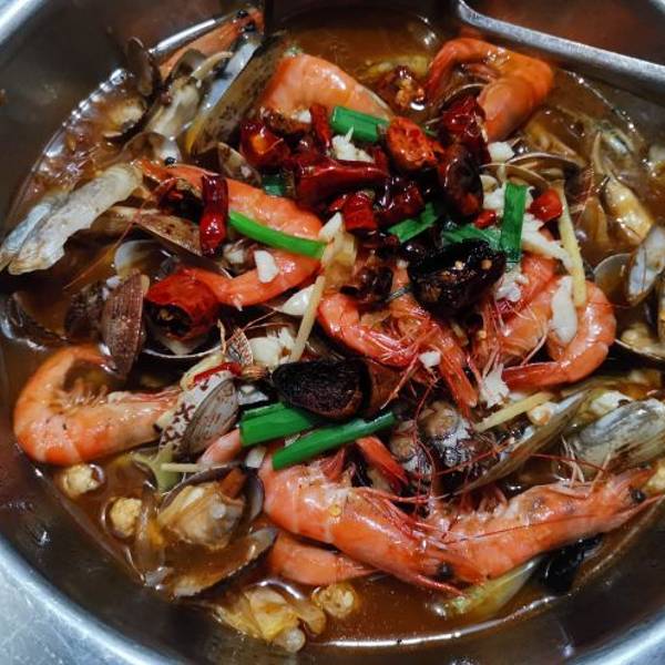 最喜欢的是招牌水煮四宝,里面有虾,花蛤,还有老蛏,和一些配菜等,有辣椒的鲜香却又不会太重口味,不会太辣太咸,刚刚好的味道,很下饭啊。