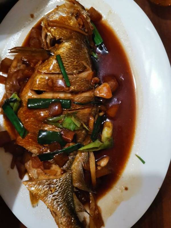 酱油水黄花鱼,很大一条新鲜的鱼,肉质紧食,同桌的阿姨一直夸赞好吃呢。