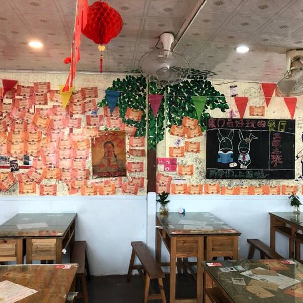 曾厝安天桥下对着的文青街里有个很有特色的餐厅,就像小时候的班级。这次去一看居然还多了几个上下铺,哈哈。 生意挺好的,很多年轻人慕名而来,拍照打卡,重温学校时光。课桌、黑板、考试卷(其实是菜单...曾厝安天桥下对着的文青街里有个很有特色的餐厅,就像小时候的班级。这次去一看居然还多了几个上下铺,哈哈。 生意挺好的,很多年轻人慕名而来,拍照打卡,重温学校时光。课桌、黑板、考试卷(其实是菜单),挺有意思。 这家的菜都符合大众口味,汽锅生蚝,里面的个数挺多的,干锅包菜味道也不错。土笋冻厦门特色。看其他桌还有小龙虾,好大一盆,看起来挺有食欲。