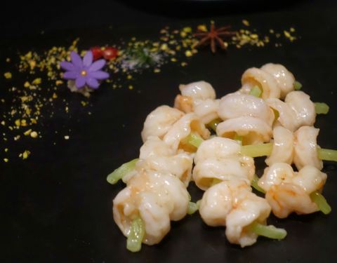 ...玉簪虾球”了,一整颗的虾仁,中间包裹着一条莴笋,滑嫩的虾肉与脆爽的莴笋搭配在一起的口感,很美妙