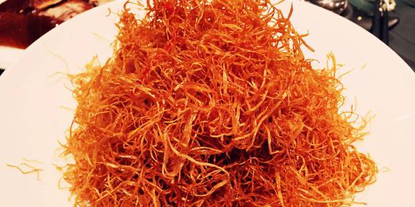 位置在金宝街的后面,闹中取静,装修风格京味十足。菜系是北京烤鸭和粤菜的融合,简直就是我的最爱啊。全鸭季烤鸭,每桌必点,算是这里的特色菜了。不光烤鸭,鸭饼也挺好吃的,鸭架做了椒盐的,味道还可以。一些传统的粤菜,这里做的味道都不错。