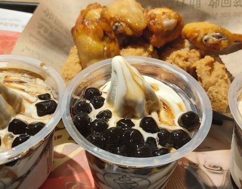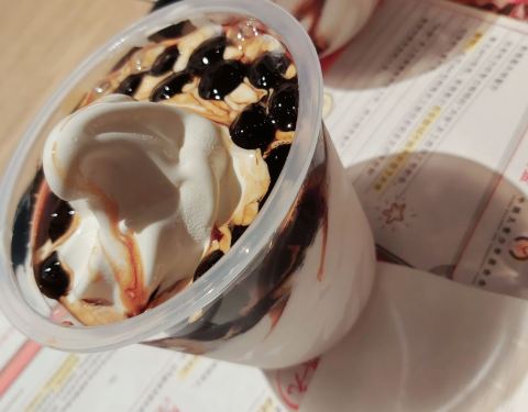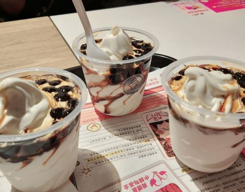 - 还点了三杯冰淇淋,黑珍珠口味,一家三口悠闲的吃个下午茶,挺好