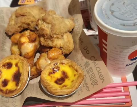 - ...包括两个葡式蛋挞,两个奥尔良烤翅,两个吮指原味鸡,味道很棒,份量很足,价格打了折扣后,比较实惠