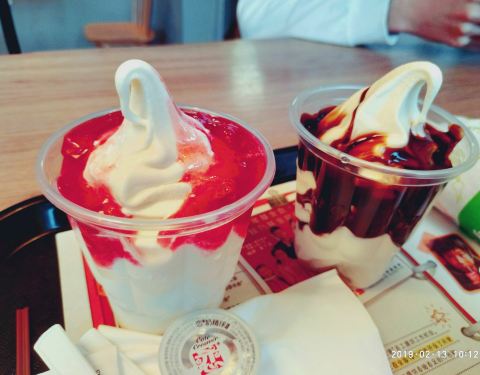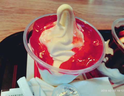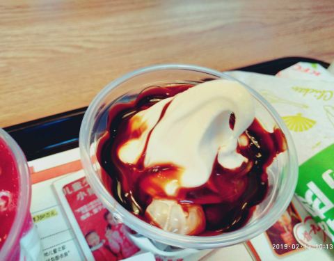 今天去大润发买东西,购物之前先去肯德基吃个冰淇淋,三份珍珠果巧克力新地,味道非常棒,分量有点少,尤其是中间空了好多,吃完后发现杯底居然也是凸起的,估计又可以少装一些。