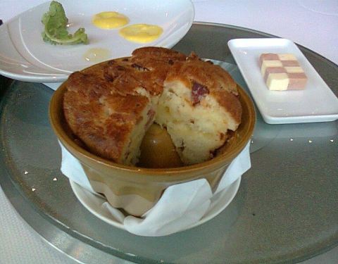 - 落座,这面包筐一端上来就惊艳了,甜的,咸的,香的,硬的,软的,还有一盘很Q的鳕鱼球