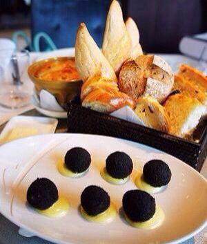 落座,这面包筐一端上来就惊艳了,甜的,咸的,香的,硬的,软的,还有一盘很Q的鳕鱼球!环境不错 waiter也很贴心。