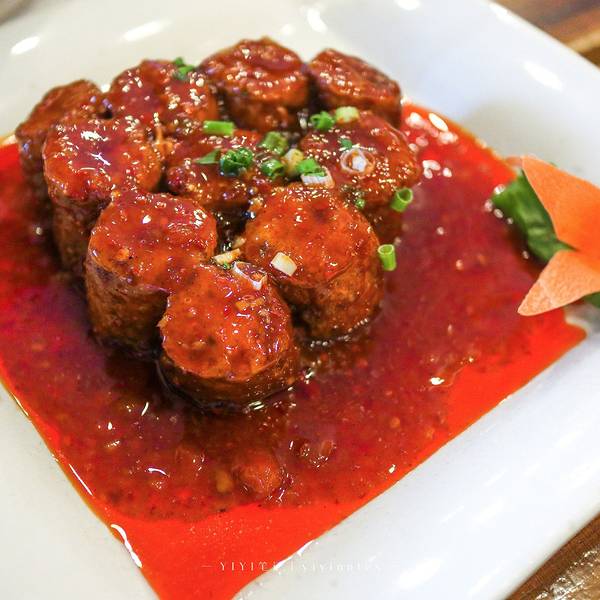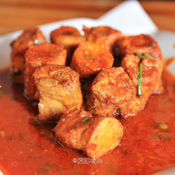 - 先来一份咸蛋黄豆腐,口感有点像在吃螃蟹,味道棒极了,果然名不虚传。里面有馅儿,喜欢糖醋的一定不能错过