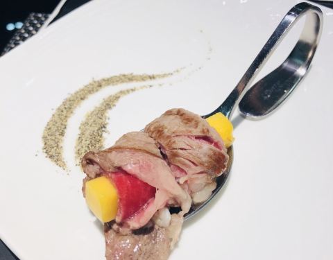 到厦门来旅行,朋友安排了一顿晚宴招待。一开始不想来,因为他说128的铁板烧。我心想我千里迢迢跑到厦门吃铁板烧,而且才128块。我有点小情绪。后来他派司机接我,我才知道。他微信里没有说清楚啦,铁板烧的全名叫故宫128,这家故宫128铁板烧位于厦门故宫路128号,高级酒店般的门面和大堂,宽敞明亮,富丽堂皇,餐厅有8个包厢,包厢豪华舒适,2-10人都有适合的位置,我们今晚的包间能坐6人(故宫5号包间)围坐在铁板周围,看着厨师现场烹制好后送到面前,有种贵宾的感觉❤️然后点开大众点评看了下人均…原来人均500多…朋友对我是真爱 每个包间配有一个服务员,开始走菜,服务员给每位客人倒了洛神花饮,端了2份餐前开胃菜和餐前开胃水果,有我最爱的蓝莓。 然后又上了一个手工墨鱼面包,面包松软香甜,然后根据顺序依次上了汤、鹅肝蒸蛋、铁板大虾、铁板鹅肝和铁板牛肉还有蔬菜、鹅肝炒饭和芒果西米露。鹅肝—法餐中的顶级美食,有人将鹅肝称为“美味之王”,其昂贵的价格更是普通人难得一品的美味。这家的鹅肝切的大块厚实,一看就令人食指大动,在铁板上烤一会,浓浓的香气就飘散开来,不多时鹅肝就已经呈现金黄诱人的色泽,大厨把鹅肝放入盘中,再搭配上鱼子酱、苹果、黄桃和桑果酱,摆盘鹅肝外焦里嫩,入口即化,桑果酱也是餐厅自己熬制的。 吃完浓香的鹅肝,吃个鲜笋沙拉清爽一下。接着大厨准备了牛肉卷,选用优质澳洲牛肉,烤至5分熟,卷着桑叶和鱼籽,吃的时候要整卷送入口中,娇嫩的牛肉和清香的桑叶、鲜美的鱼籽在口中混合,味道很美妙。 最后说一下,这家餐厅已经开业八年了!但是完全看不出来!而且餐厅离中山路不远,就几百米。吃完可以继续去逛下夜晚的中山路。感受一下美丽的厦门夜景!