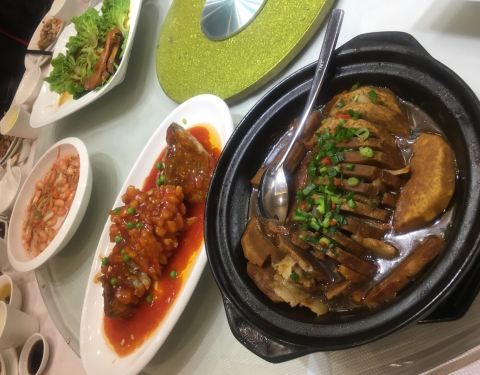 比较推荐几个,芋头烧肉、松鼠鲈鱼、白灼虾、腊肉笋,有个忘记名字的小米粥、粉丝蒸海鲜都很新鲜,...