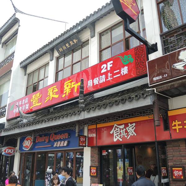 新聚丰创建于光绪三十年,是苏州本地人推荐的苏帮菜菜馆,装修老派,采用木质家具,服务员以苏州人为主。餐馆的特色菜里,清爽的清炒虾仁、鲜美的蟹粉豆腐、嫩滑的响油鳝丝、入口即化的樱桃肉是必点的“四大金刚”。