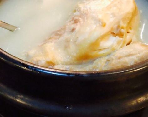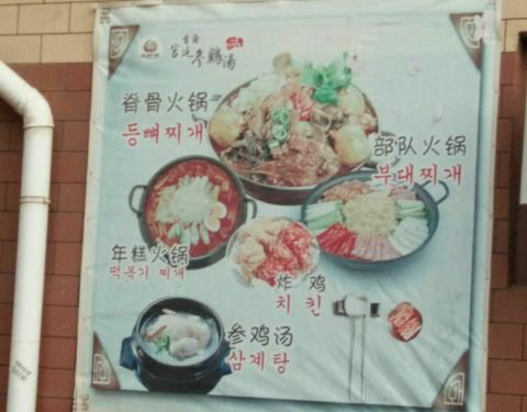附近的年轻上班族中午喜欢光顾的一家韩餐简餐店。一锅参鸡汤48元钱,再配上一碗米饭,几个辣白菜一样的小菜,几个人可以美美的饱餐一饨。店不大,也不是太好找。在丹东街上,良运大酒店对面的胡同里饭店后侧。