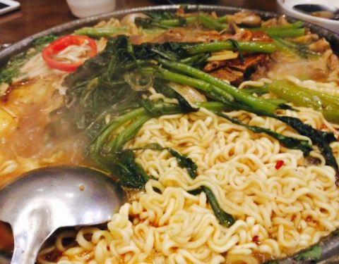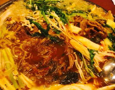 这家店已经成为午饭的一个聚点了,港湾一号里面感觉最火的就是这家店了,韩式的小馆,开始是鸡汤,之后就吃脊骨锅,特别是天冷的时候,坐在小炕上,喝几口汤吃几块骨头一下子就暖呵起来了。她家的脊骨锅有点韩式风味,带一点辣,里面配着苏子叶,茼蒿,洋芋,蘑菇等配菜,觉得很鲜美。另外石锅拌饭也要推荐,韩式辣酱拌完味道棒棒哒。同事还推荐他家的辣白菜炒肉,下次要去品尝。