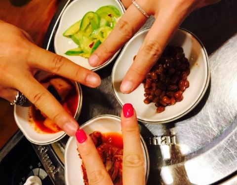 在港湾广场,楼下车位有点紧张不太好停车,进到楼里上二楼就能看见店,很正宗韩国菜,有团购套餐比较方便,辣白菜炒五花肉推荐,不是非常酸那种,味道不错,有盘腿坐的位置也有正常的台子,体会一下挺有趣的,好评。