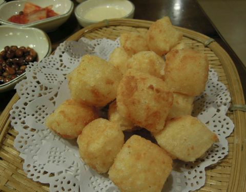 北方老板就是豪爽,用餐真是开心。前菜里,有一个腌制的什么豆子,觉得非常鲜美。我们跟老板娘说,她告诉我们是自家做的,我们要是喜欢可以再加一碟。我们惊呆了,好大方,很多地方都会说,这是赠送的,没有了,不能加巴拉巴拉。#辣白菜炒五花肉#岂一个香字了得。不过略微有点辣的。#参鸡汤#有些中药材的味道,可是还是能承受的。里边的米已经炖的烂烂的,都吸进去了鸡肉和参的浓香。#炸鸡#点的炸鸡也很让我惊讶,可以各点半份,凑成拼盘。老板娘也太好说话了。#豆腐#这个豆腐倒是一般性,没有啥味道。放到辣白菜炒五花肉里倒是味道还不错。