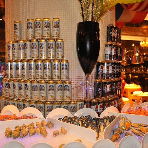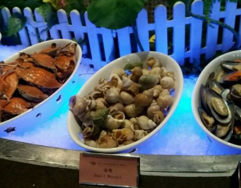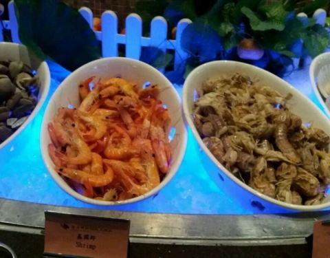 自助餐的菜品区首先就被海鲜区吸引了,海鲜品种繁多,有皮皮虾、扇贝、文蛤、基围虾、膀蟹、海螺等等...