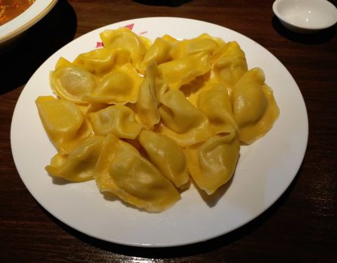 据介绍到青岛必吃鱼水饺。同事在万象城里没有找到自认正宗的,青岛的朋友专程请我们来了这里。因为是非常时期又到的早,所以客人并不太多,楼下的餐桌偏小,但服务员似乎不太愿意让我们上楼。但最后我们还是要求上了楼,就餐环境宽敞多了。
