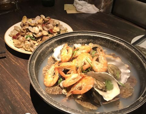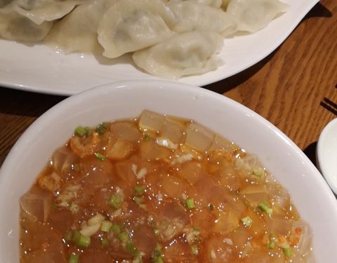 - ...有翻台子,我们坐下来就去大门口点菜,因为人少也不能点多,全家福饺子必吃,海鲜来点,最后一杯原浆