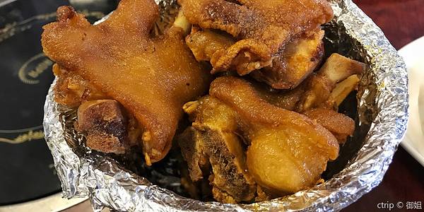 - ...木桶猪脚,猪脚腌制入味,先卤后炸,再装入木桶上桌,咬一大口只感觉到外脆里嫩,没有丝毫油腻的感觉