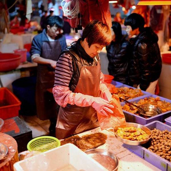 鲘门渔港附近有一个很大的综合市场,我们今晚就在这里采购海鲜。我们在接近晚上六点的时候,抵达了鲘门