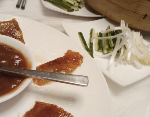 榴莲果肉香甜,点了两份没吃够,万豪片皮鸭是厨师来弄,用饼卷着黄瓜丝和葱丝吃,酱甜甜的。鸭子二吃选了椒盐鸭架,很不错。推荐菠萝炒饭,不油腻吃起来舒服。主食还点了上海锅贴,像饺子一样是煎过的。从环境到菜品再到服务,万豪中餐厅做得都没什么可以挑剔的。很满意这里,还会再来。