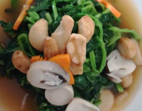 推荐这里的椰汁芡实香芋南瓜,服务员一开盖子就是椰汁的香味,分量很足。三鲜焖蹄筋有营养,清淡一些。椒盐排骨实在是太好吃了,素食吃的菜心,夫妻肺片口味偏重,杨枝甘露很好喝,凉凉的,和朋友一人喝了两份,...