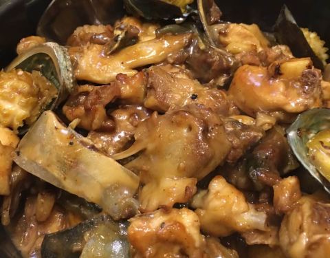 - 鲍鱼水鱼闷鸡也是水准之作,份量十足,配搭精绝,水鱼够身,鲍鱼新鲜个大