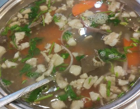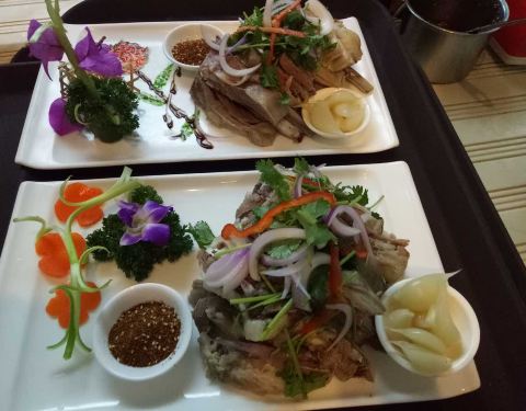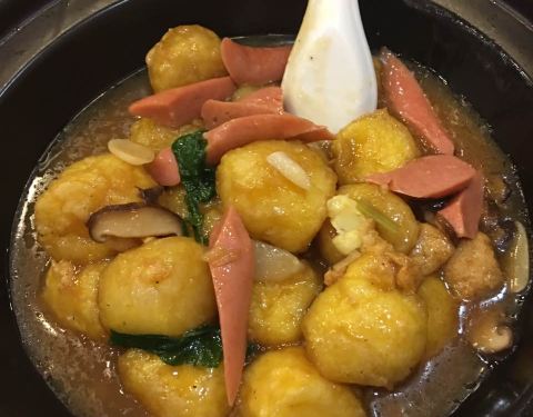 马尔龙新疆饭店在厦门也算小有名气了,以前来过一次,印象不错,去过几次大西北以后对新疆菜越发喜欢。烤羊排真的是外香里嫩,牙疼也能吃得动。烤馕香脆,可惜牙疼,只能吃一点点,真是含恨。羊杂汤也喜欢,泡馕饼吃有点羊肉泡馍的样子。这次的炒水晶粉比较一般,主菜好吃就很满足了。