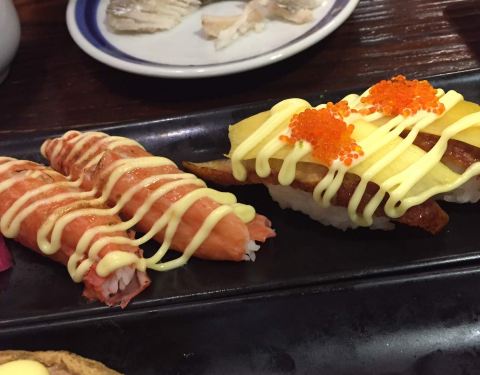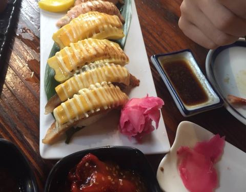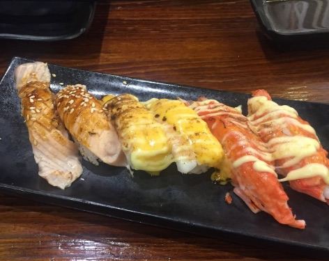 好久没有来 东西还是久违的好吃1# 皇帝蟹棒加芒果鳗鱼 蟹棒的刚好搭配芒果鳗鱼的酸甜2#牛立方 当一口的牛肉遇上五成熟口水直流3#盐烧三文鱼骨香脆可口·相比起其他的日料来说 这家挺满意