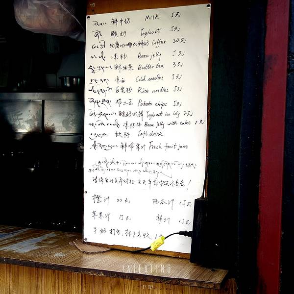 离开最热闹的布达拉宫那里稍微的有一些的距离的,一条小街道旁边的一座小店,环境方面你就不要指望有多少好的了,估计吃环境的肯定要嫌弃的了。个人看见有人排队,关键还有当地人也在排队,所以决定绝对要尝试一下的! 一个人点了一杯鲜牛奶,一份酸奶,一份凉粉,一份炸土豆,一共是20元人民币。个人最为喜欢的就是鲜牛奶了,味道非常的醇厚,其次就是酸奶。炸土豆还能吃吃,凉粉就比较普通的了。 然后坐在里面吃的,里面坐着也有当地人,感觉还挺好的,挺接地气的!:)