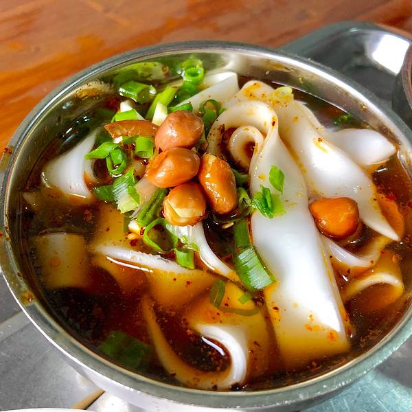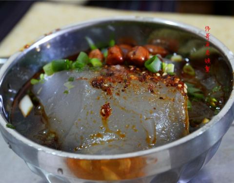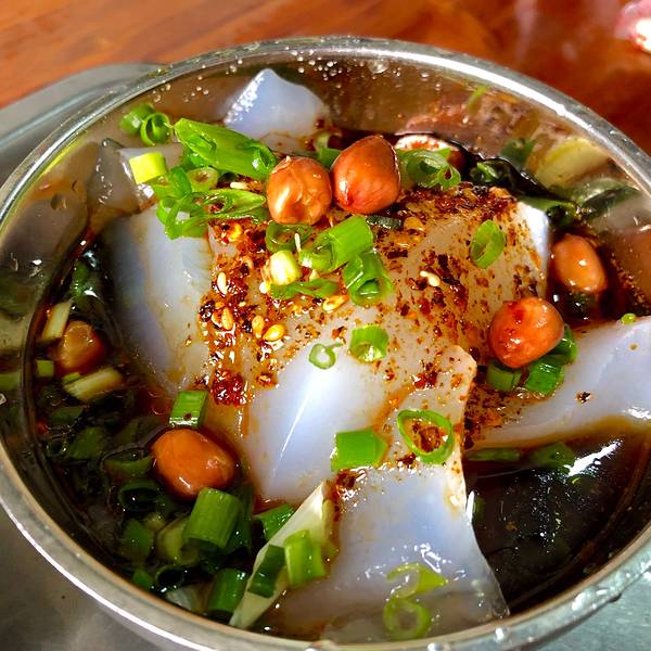 - 超级好吃,强烈推荐,一份宽白粉,也不错,小小的一份,竟然能吃饱,还有一个凉粉饼,就是病上面摊一个凉粉