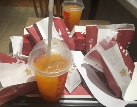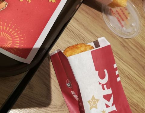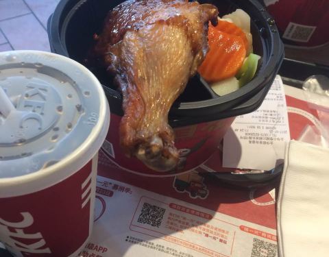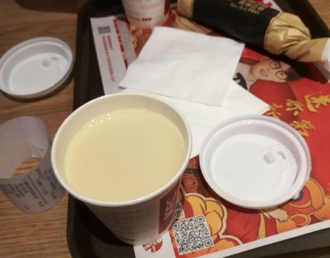 来肯德基,一是方便,二是卫生,三是价格也不贵!这次是来吃早餐,小朋友们还不太习惯,我吃了觉得还可以,豆浆很醇厚,饭团很香!