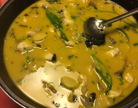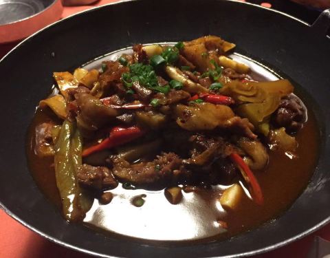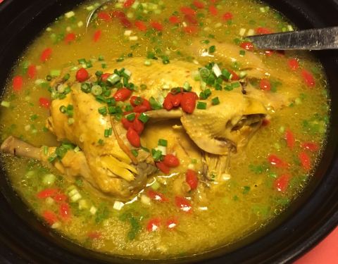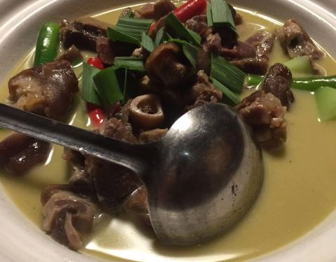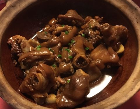 这家私房菜馆以前经常来,最近倒是少了些。这次同事聚餐,又选了这里。点了鸿运当头,水芹菜炒鳝鱼,腊味三蒸,三味茄子,菠萝油条,腊猪脚汤,以及招牌鸡,酸菜牛腩之类,味道偏辣一些,不过鳝鱼和腊猪脚,牛腩都不错,肉比较烂,比较喜欢。
