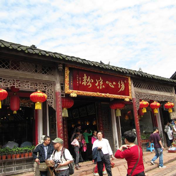 从景区正门进去不远即可到达此店,基本是在核心地带,所以生意不错。但因为是景区内大批量的生产,感觉少了那份本地小吃特有的那份氛围。店面装修还不错,古色古香,颜色也喜庆。