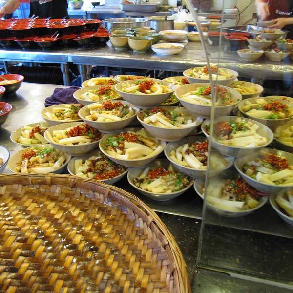 开了好多年的老店,在洛带古镇这种寸土寸金的地方面对面的有两个店。规模还都比较大,可想而知生意是有多好。伤心凉粉在洛带老街基本快要逛完的位置,都是先到前台买票,然后自己去端。现在的价格一般都在10元一碗,麻辣味的凉粉太辣,味道也不觉得特别好,性价比一般。