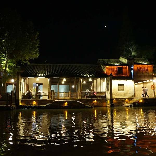 我喜欢西栅的夜景,若是白天的风光我会比较喜欢东栅的,西栅街上卖着很多小吃,我推荐萝卜丝饼,一个才三块,非常好吃,而且西栅早晚温差大,晚上吃着刚炸好热呼呼的萝卜丝饼,非常幸福。我们的晚餐是在民宿十五甲用餐的,用餐环境不大,就两张桌,吃的是乌镇的家常小菜,便宜又好吃!建议早点来吃,不然要排队很久。我们晚上还去了西栅有名的酒吧街,选择老木头酒吧,其实我觉得音乐有点太吵,会比较建议去另一家雨过天青,那里是民谣式的曲风,比较安静,来西栅还是安静地看着河边景色配着酒和吉他音乐比较惬意,我们在西栅并没有搭船,拚船一个人要60块,觉得有点不太划算,西栅的夜景在桥上看就足够了我觉得,看的也比较全面,若真的要坐船的话,白天坐会比较好,会很像真的在进入了电影似水年华那样的感觉。