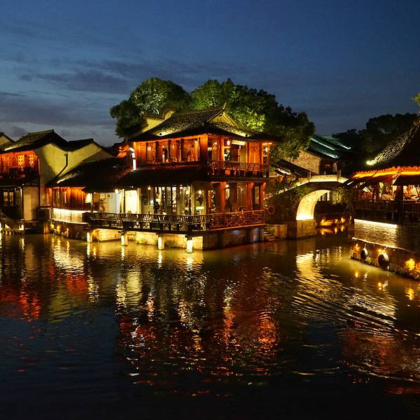 适合慢慢逛的精致水乡,每当夜幕降临,西市河两岸夜色醉人。