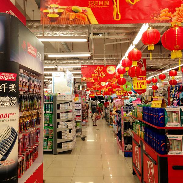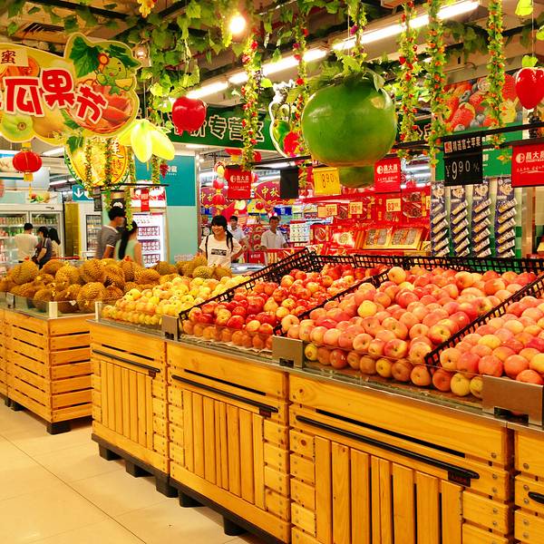 超市品种比较齐全,人流量也蛮大的,但可能开业也有一些时日了,所以感觉有点老旧。